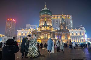 (250626) -- HARBIN, 26 junio, 2025 (Xinhua) -- Imagen del 23 de enero de 2025 de personas visitando la Catedral...