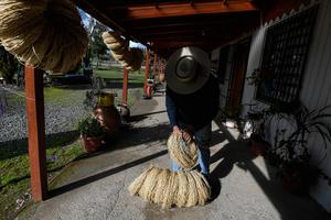 (250626) -- NINHUE, 26 junio, 2025 (Xinhua) -- Imagen del 13 de junio de 2025 del artesano de chupallas, (sombrero...
