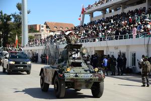 (250626) -- ANTANANARIVO, 26 junio, 2025 (Xinhua) -- Un desfile militar se lleva a cabo durante una celebración para conmemorar...