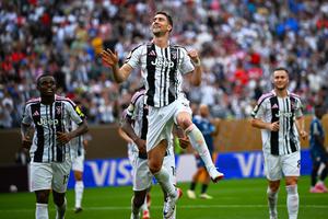 (250623) -- FILADELFIA, 23 junio, 2025 (Xinhua) -- Imagen del 22 de junio de 2025 de Dusan Vlahovic (frente), de...