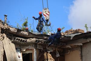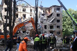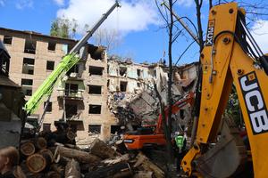 (250623) -- KIEV, 23 junio, 2025 (Xinhua) -- Empleados del Servicio Estatal de Emergencias de Ucrania realizan operaciones de búsqueda...