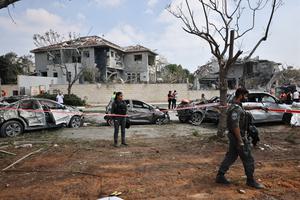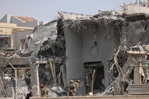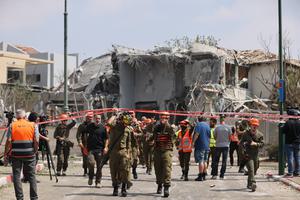 (250623) -- NES ZIONA, 23 junio, 2025 (Xinhua) -- Imagen del 22 de junio de 2025 de trabajadores de emergencias...