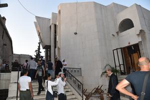 (250623) -- DAMASCO, 23 junio, 2025 (Xinhua) -- Imagen del 22 de junio de 2025 del patio dañado de la...