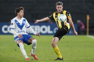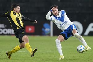 (250530) -- MONTEVIDEO, 30 mayo, 2025 (Xinhua) -- Imagen del 29 de mayo de 2025 del jugador Ignacio Sosa (d),...