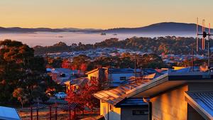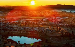 (250530) -- CANBERRA, 30 mayo, 2025 (Xinhua) -- Vista aérea del 30 de mayo de 2025 del amanecer sobre el...