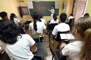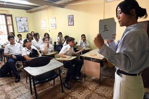(250529) -- LA HABANA, 29 mayo, 2025 (Xinhua) -- La profesora china, Hou Jiaqi (atrás), de 28 años, imparte una...