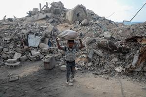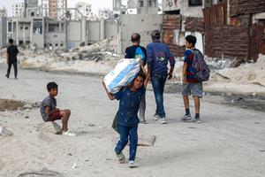 (250625) -- CIUDAD DE GAZA, 25 junio, 2025 (Xinhua) -- Imagen del 24 de junio de 2025 de un niño...