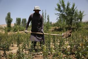 (250625) -- WARDAK, 25 junio, 2025 (Xinhua) -- Imagen del 23 de junio de 2025 de un agricultor afgano cosechando...