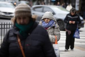 (250623) -- BUENOS AIRES, 23 junio, 2025 (Xinhua) -- Mujeres portan ropa abrigadora mientras caminan por una calle durante una ola de...