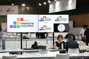 (250630) -- SEVILLA, 30 junio, 2025 (Xinhua) -- El subsecretario general de las Naciones Unidas, Li Junhua, habla durante la...