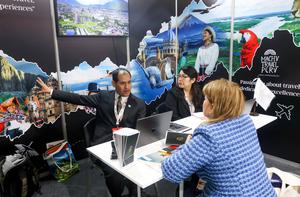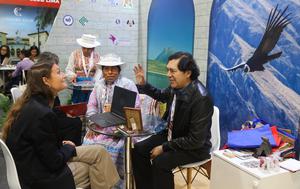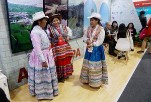 (250628) -- LIMA, 28 junio, 2025 (Xinhua) -- Expositoras participan en el evento Perú Travel Mart 2025, en Lima, Perú,...