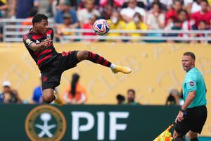 (250630) -- MIAMI, 30 junio, 2025 (Xinhua) -- Imagen del 29 junio 2025 de Gonzalo Plata, de CR Flamengo, compitiendo...