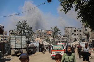 (250630) -- CIUDAD DE GAZA, 30 junio, 2025 (Xinhua) -- Imagen del 29 de junio de 2025 de humo emanando...