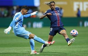 (250630) -- ATLANTA, 30 junio, 2025 (Xinhua) -- Imagen del 29 de junio de 2025 de Bradley Barcola (d), de...