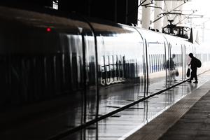 (250701) -- BEIJING, 1 julio, 2025 (Xinhua) -- Un pasajero es visto en la Estación del Ferrocarril de Shijiazhuang, en...