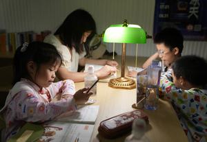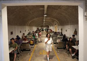 (250701) -- HANGZHOU, 1 julio, 2025 (Xinhua) -- Una niña realiza tareas escolares en un refugio antiaéreo, en Hangzhou, en...