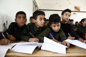 (250701) -- SANA, 1 julio, 2025 (Xinhua) -- Imagen del 30 de junio de 2025 de estudiantes asistiendo a una...
