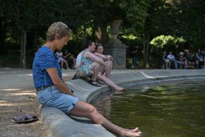 (250701) -- BRUSELAS, 1 julio, 2025 (Xinhua) -- Imagen del 30 de junio de 2025 de personas refrescándose en un...