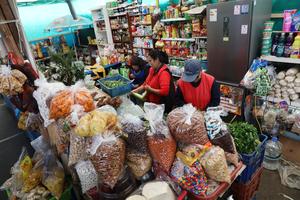 (250702) -- LIMA, 2 julio, 2025 (Xinhua) -- Vendedores preparan sus productos en un puesto de un mercado, en Lima,...