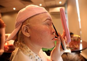 (250702) -- HARARE, 2 julio, 2025 (Xinhua) -- Imagen del 28 de junio de 2025 de una concursante maquillándose previo...