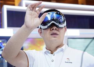 (250702) -- BEIJING, 2 julio, 2025 (Xinhua) -- Un visitante prueba un dispositivo de realidad mixta en un área de...
