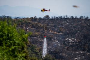 (250702) -- LÉRIDA, 2 julio, 2025 (Xinhua) -- Un avión de bomberos extingue las llamas, en la provincia de Lérida,...