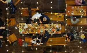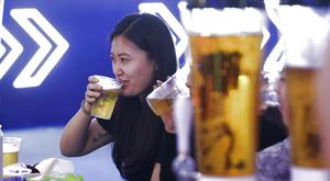 (250706) -- HARBIN, 6 julio, 2025 (Xinhua) -- Imagen del 5 de julio de 2025 de visitantes disfrutando de cervezas...
