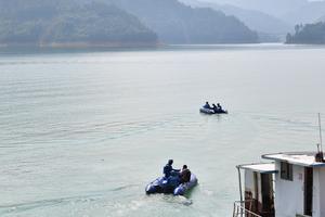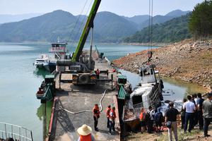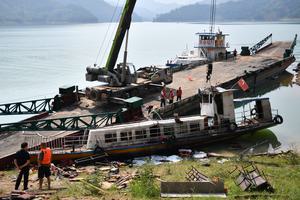 (250706) -- CHANGSHA, 6 julio, 2025 (Xinhua) -- Rescatistas trabajan en el sitio de un hundimiento de un barco, en...