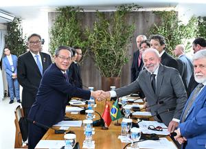 (250706) -- RIO DE JANEIRO, 6 julio, 2025 (Xinhua) -- El primer ministro chino, Li Qiang, se reúne con el...