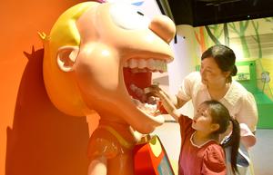 (250705) -- BEIJING, 5 julio, 2025 (Xinhua) -- Una niña aprende a cepillarse los dientes por medio de un modelo...