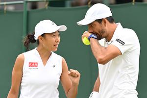 (250705) -- LONDRES, 5 julio, 2025 (Xinhua) -- Zhang Shuai (i)/Marcelo Arévalo reaccionan durante el partido de primera ronda de...