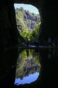 (250705) -- CHONGQING, 5 julio, 2025 (Xinhua) -- Turistas visitan el punto escénico de Taohuayuan, en el distrito autónomo tujia...