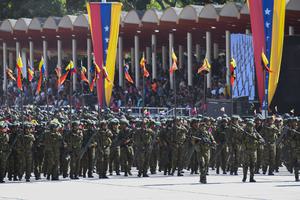 (250705) -- CARACAS, 5 julio, 2025 (Xinhua) -- Integrantes de la Fuerza Armada Nacional Bolivariana participan en el desfile por...