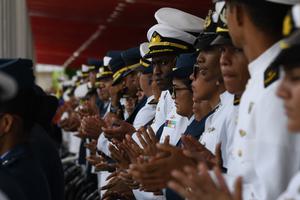 (250705) -- HONG KONG, 5 julio, 2025 (Xinhua) -- Soldados realizan una presentación para los visitantes en la cubierta del...