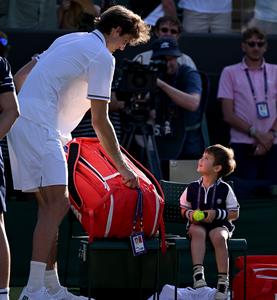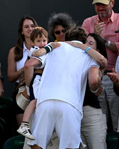 (250705) -- LONDRES, 5 julio, 2025 (Xinhua) -- Imagen del 4 de julio de 2025 de Nicolás Jarry (c) festejando...