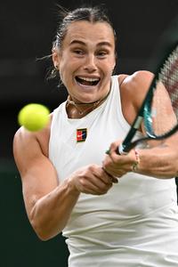 (250705) -- LONDRES, 5 julio, 2025 (Xinhua) -- Imagen del 4 de julio de 2025 de Aryna Sabalenka devolviendo la...