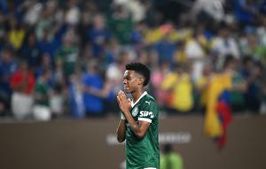 (250705) -- FILADELFIA, 5 julio, 2025 (Xinhua) -- Imagen del 4 de julio de 2025 de Estevao, de Palmeiras, agradeciendo...