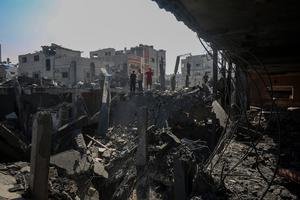(250705) -- GAZA, 5 julio, 2025 (Xinhua) -- Imagen del 4 de julio de 2025 de palestinos inspeccionando una vivienda...