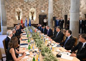 (250704) -- ISLA DE RODAS, 4 julio, 2025 (Xinhua) -- El primer ministro chino, Li Qiang, se reúne con el...