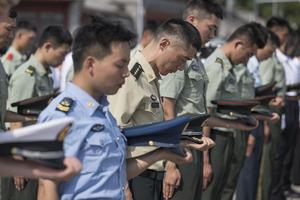 (250707) -- BEIJING, 7 julio, 2025 (Xinhua) -- Representantes del personal militar del Ejército Popular de Liberación de China sostienen un momento de silencio, durante una ceremonia para conmemorar el 88º aniversario del inicio de la resistencia de toda la nación contra la agresión japonesa, en Beijing, capital de China, el 7 de julio de 2025. China celebró el lunes una ceremonia para conmemorar el 88º aniversario del inicio de la resistencia de toda la nación contra la agresión japonesa. (Xinhua/Cai Yang) (rtg) (ah) (vf)