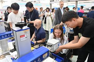 (250708) -- TIANJIN, 8 julio, 2025 (Xinhua) -- Imagen del 7 de julio de 2025 de invitados visitando el Colegio Técnico Vocacional de Industrias Ligeras de Tianjin, en el norte de China. Los invitados se reunieron en Tianjin para el Diálogo Mundial de Alcaldes -- Cumbre Ciudades de la Organización de Cooperación de Shanghai (OCS) y visitaron la terminal inteligente de carbono cero del Puerto de Tianjin, el Museo de Construcción y Experiencia del Taller de Luban y otros lugares para aprender sobre el desarrollo económico y social de China. (Xinhua/Li Ran) (oa) (ah) (vf)