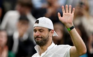 (250708) -- LONDRES, 8 julio, 2025 (Xinhua) -- Imagen del 7 de julio de 2025 de Grigor Dimitrov saludando a...