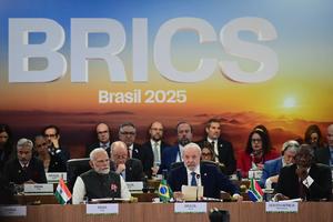 (250707) -- RIO DE JANEIRO, 7 julio, 2025 (Xinhua) -- El presidente brasileño, Luiz Inácio Lula da Silva (c-frente), el...