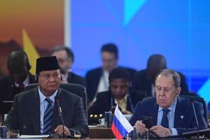 (250707) -- RIO DE JANEIRO, 7 julio, 2025 (Xinhua) -- El presidente indonesio, Prabowo Subianto (i-frente), y el ministro de...