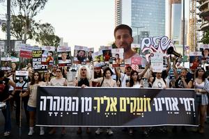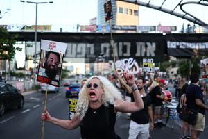 (250707) -- TEL AVIV, 7 julio, 2025 (Xinhua) -- Imagen del 6 de julio de 2025 de personas manifestándose para...