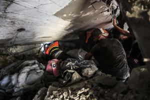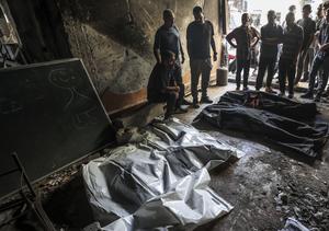 (250707) -- GAZA, 7 julio, 2025 (Xinhua) -- Imagen del 6 de julio de 2025 de cuerpos de víctimas vistos...