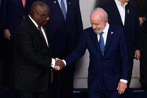 (250707) -- RIO DE JANEIRO, 7 julio, 2025 (Xinhua) -- El presidente brasileño, Luiz Inácio Lula da Silva (d), estrecha...