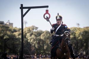 (250709) -- BUENOS AIRES, 9 julio, 2025 (Xinhua) -- Un miembro del Regimiento de Granaderos a Caballo realiza una prueba de...
