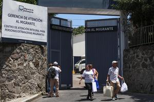 (250709) -- SAN SALVADOR, 9 julio, 2025 (Xinhua) -- Un migrante salvadoreño deportado de Estados Unidos es acompañado por su...