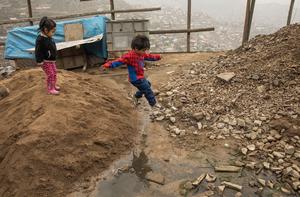 (250709) -- LIMA, 9 julio, 2025 (Xinhua) -- Niños juegan en una calle durante la época de bajas temperaturas por...